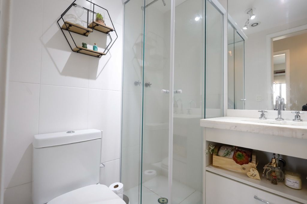 Banheiros equipados com armários e acabamentos de qualidade
