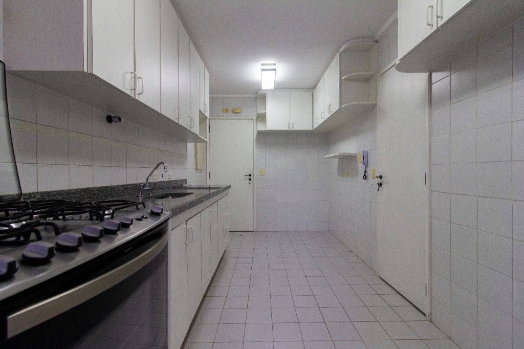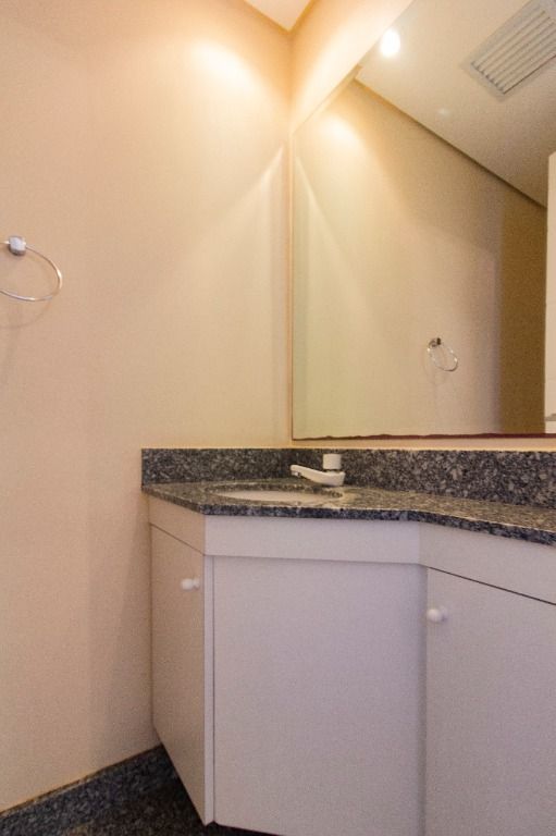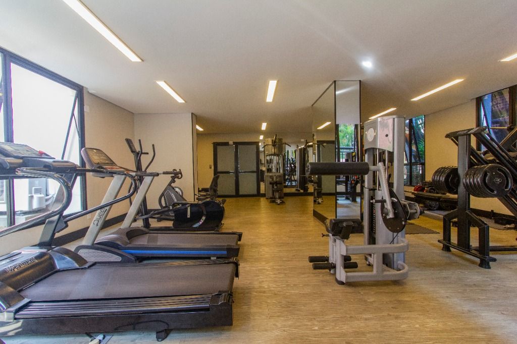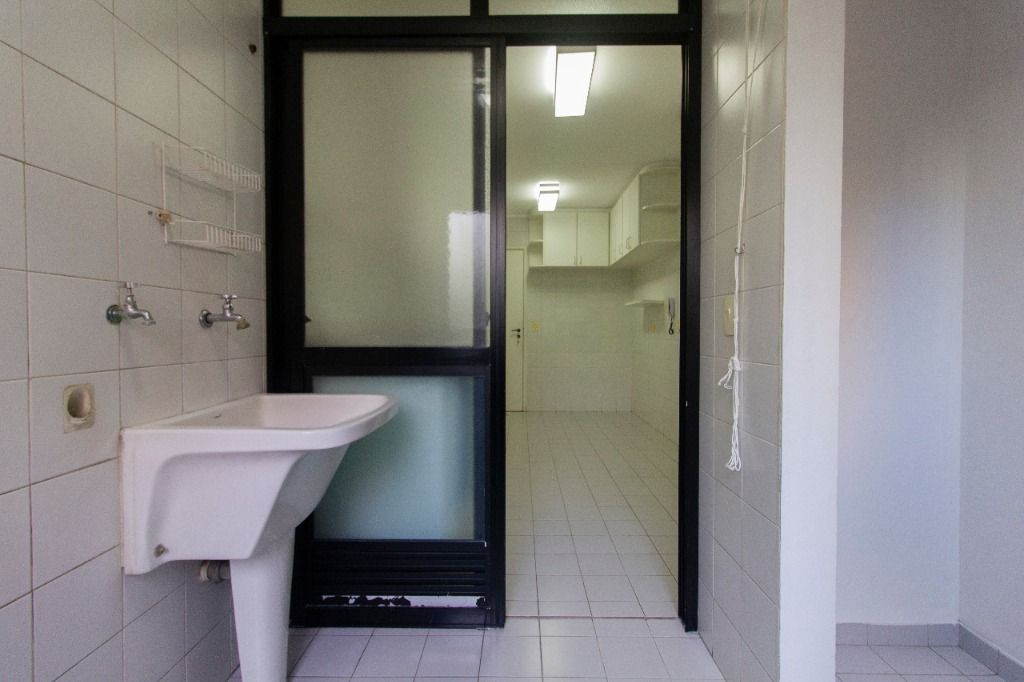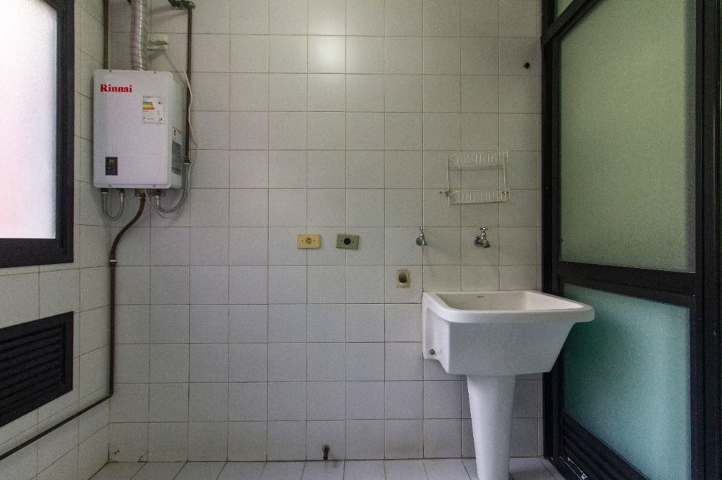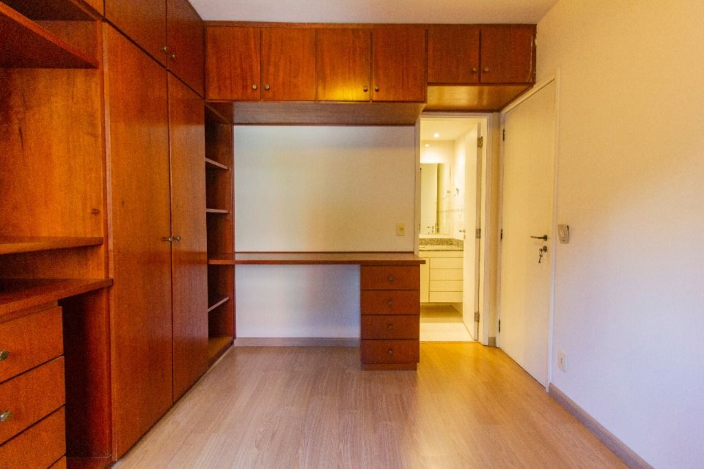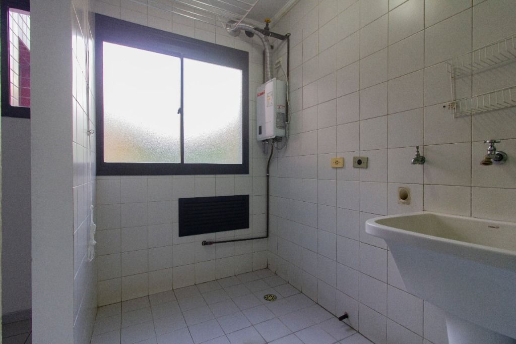 Este apartamento de 121m² oferece ambientes amplos, bem distribuídos e já equipados com piso laminado, armários em todos os cômodos, pias e aquecedor.