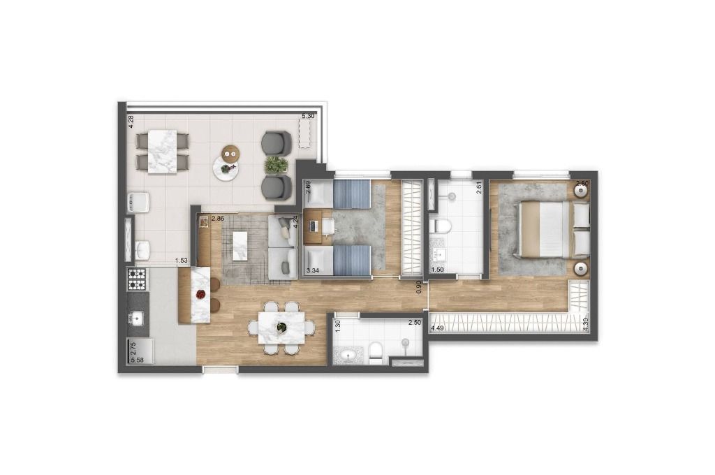 Planta moderna e bem distribuída