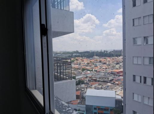 • Porta-balcão de vidro que liga a sala à varanda