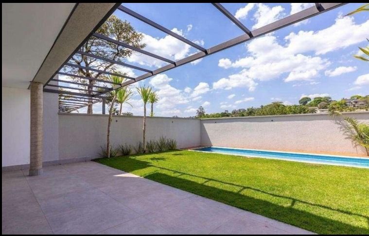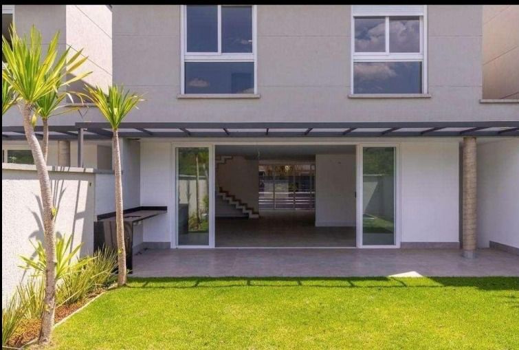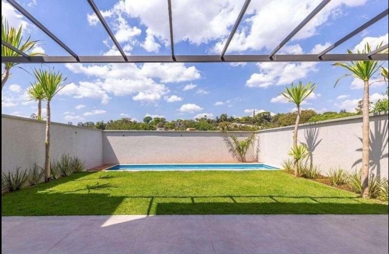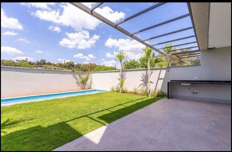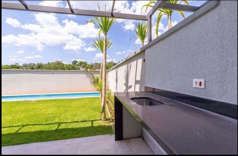 Casa nova, em condomínio fechado de alto padrão, com 424,76 m² de área privativa, projeto contemporâneo e ambientes amplos integrados.