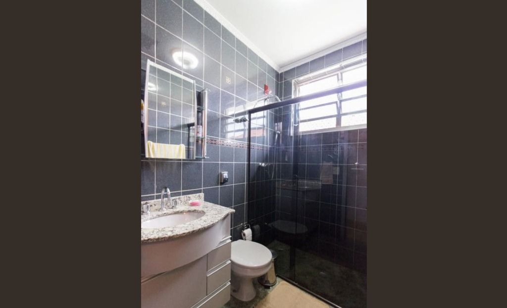 Casa com 200 m² de área construída, composta por 3 dormitórios, sendo 1 suíte, 4 banheiros, salão amplo, área com churrasqueira e 2 vagas de garagem.