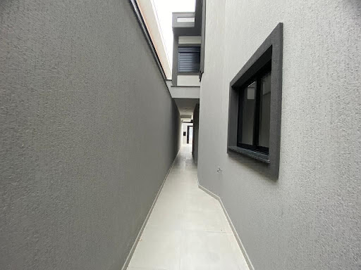 Sobrado novo com design contemporâneo, ambientes amplos e excelente iluminação natural. Possui sala de estar e jantar, lavabo, cozinha, área de churrasqueira, lavanderia e sacada com jardineira. Conta com tubulação para água quente e fria, janelas com venezianas automatizadas e portões automáticos.