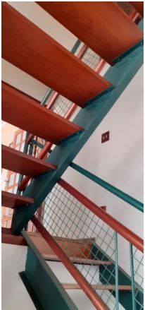 Escada interna metálica com assoalho de madeira e corrimão personalizado