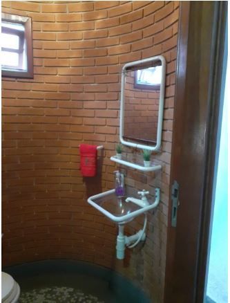Lavabo em tijolo aparente e piso em vidrotil