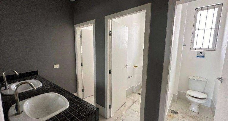 Conta com 4 banheiros amplos (masculino e feminino), 2 cozinhas, 8 vagas de estacionamento e fachada totalmente espelhada, garantindo ótima visibilidade.
