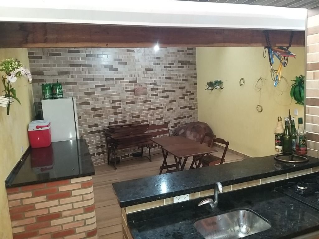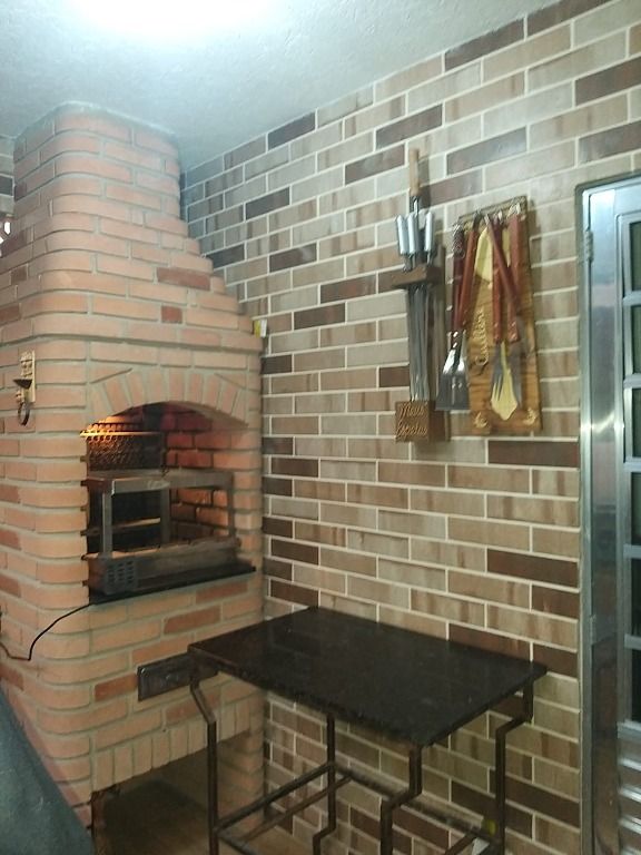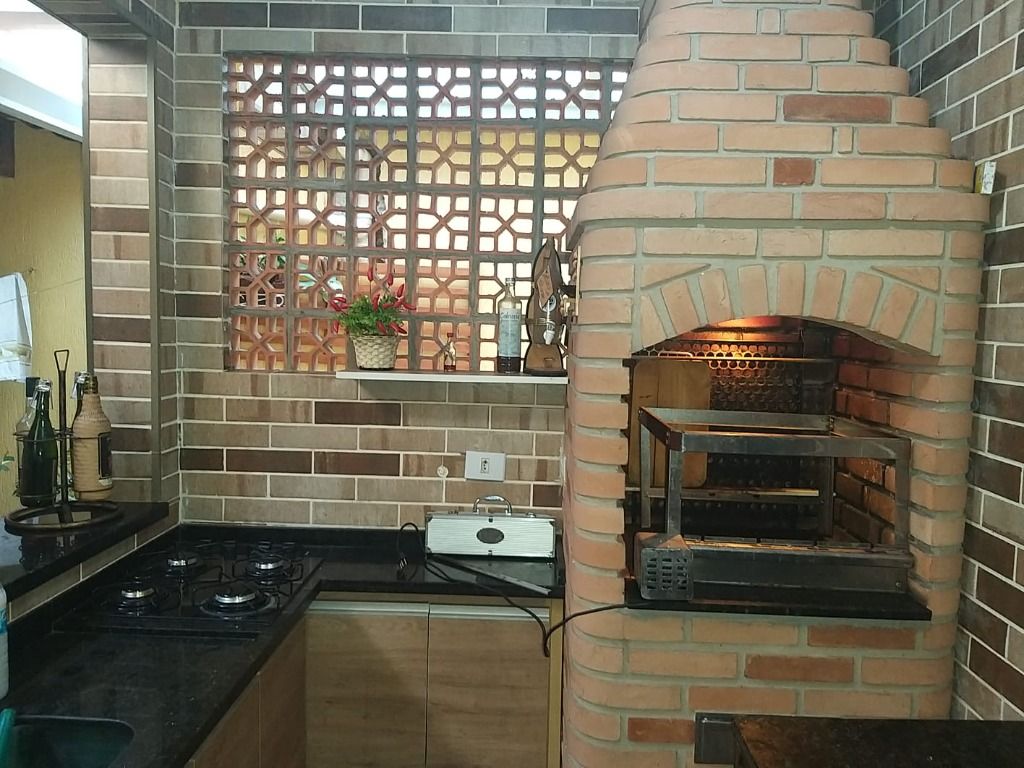 Ampla área gourmet com churrasqueira e lavabo