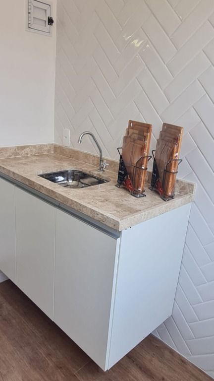 Área: 1 dormitório + escritório (home office) Sala integrada à cozinha